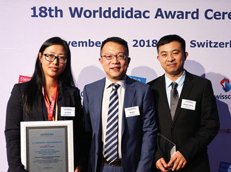2018年,朗威®移动式数字化小学科学探究系统荣获世界教具联合会创新产品大奖